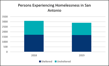 In San Antonio, family homelessness increased by 12% between 2016 and 2020, despite only a 5% increase in homelessness overall. More than 3,155 people experienced homelessness in Bexar County on a single night in 2023.